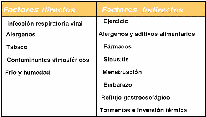 humo, el aire frío y el ejercicio.