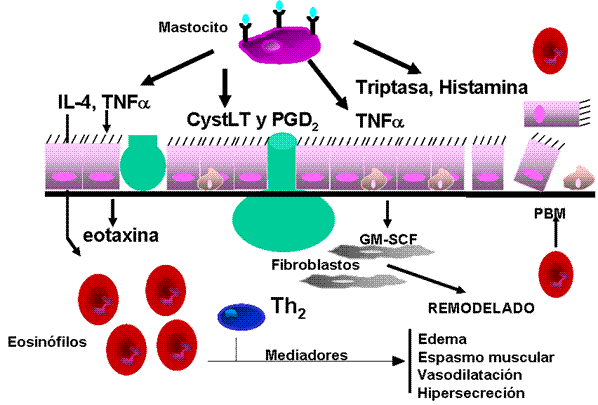 asmáticos tienen mayor población de mastocitos, tanto en la luz